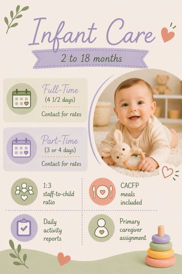 We accept checks, cash, and electronic payments via ProCare, Venmo, and Apple Pay. We also accept various third-party childcare subsidies, including programs such as 4Cs, RCCS, and other approved funding sources.